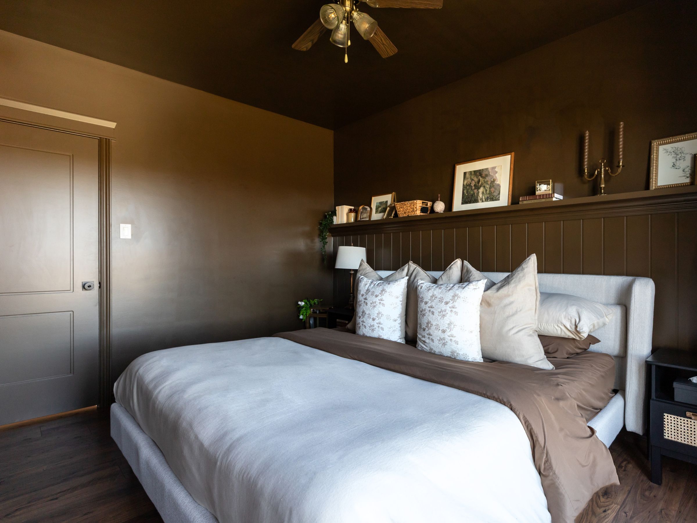 Une réalisation d'une maison préfabriquée appelée Mignonne. Cette réalisation client est de style plain-pied, vu de la chambre des maîtres.