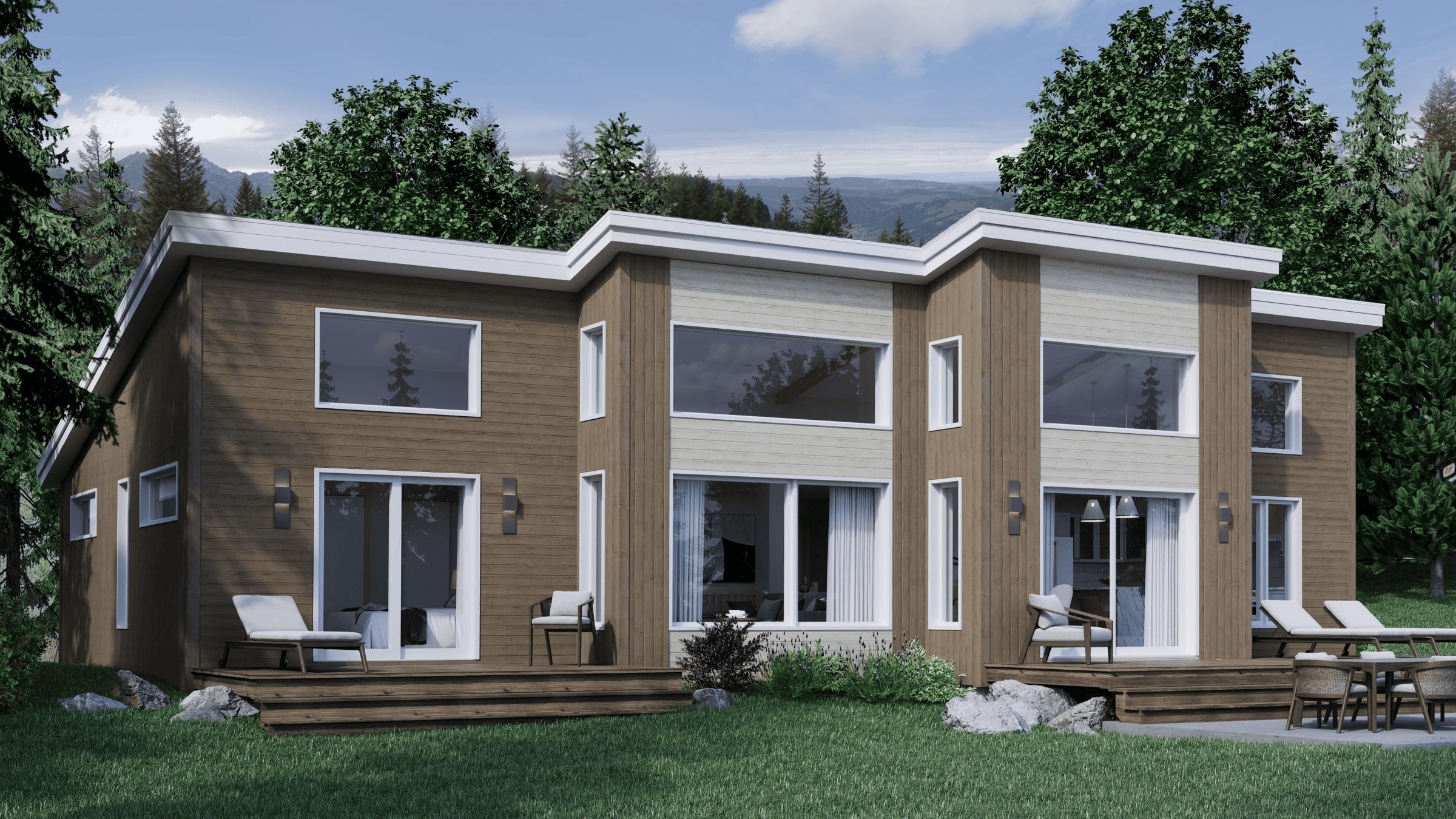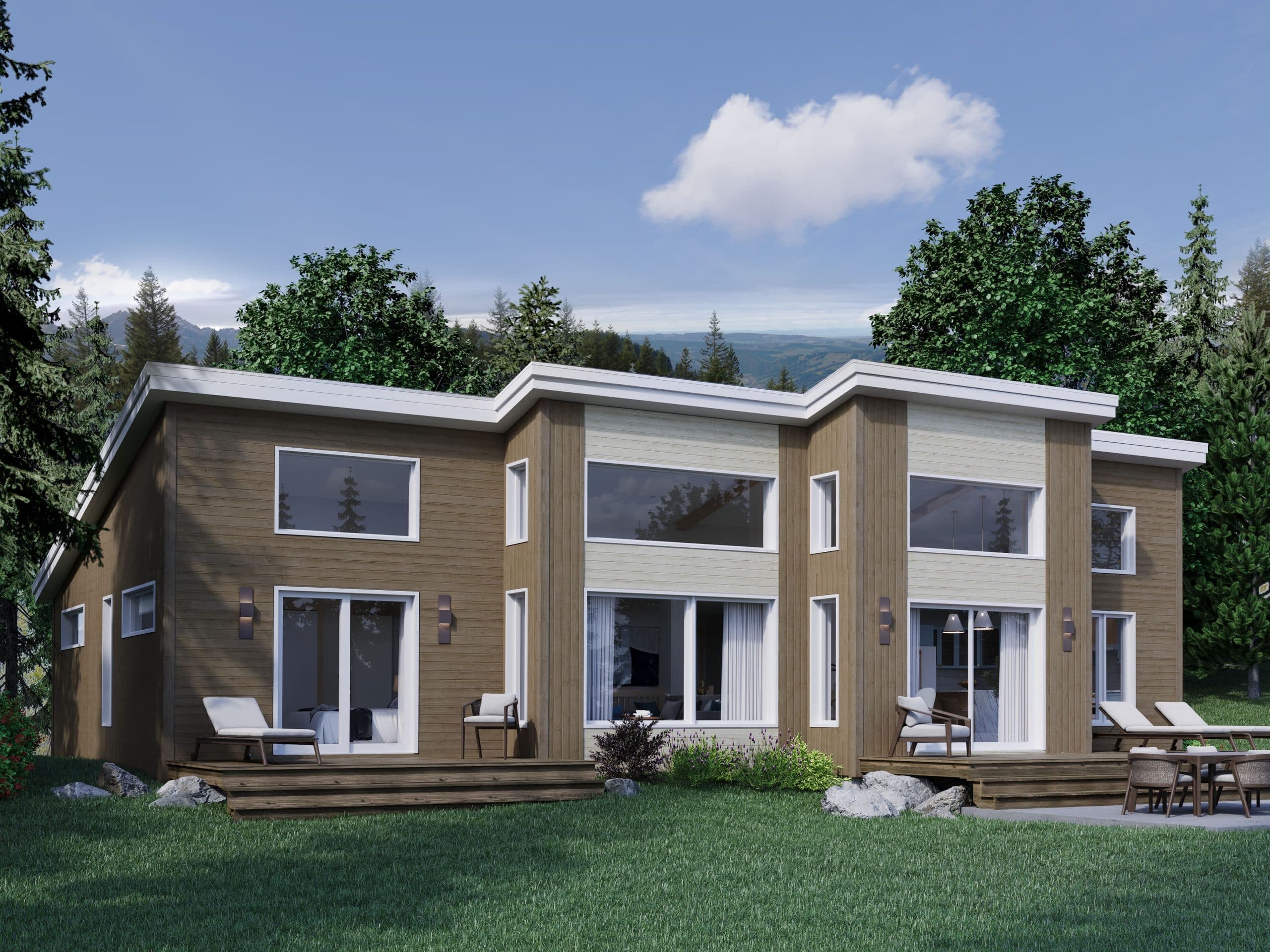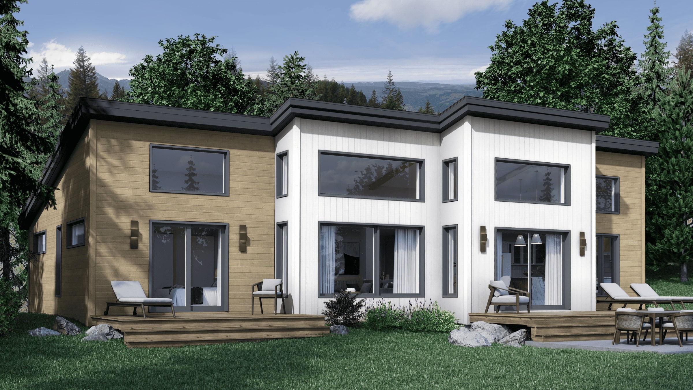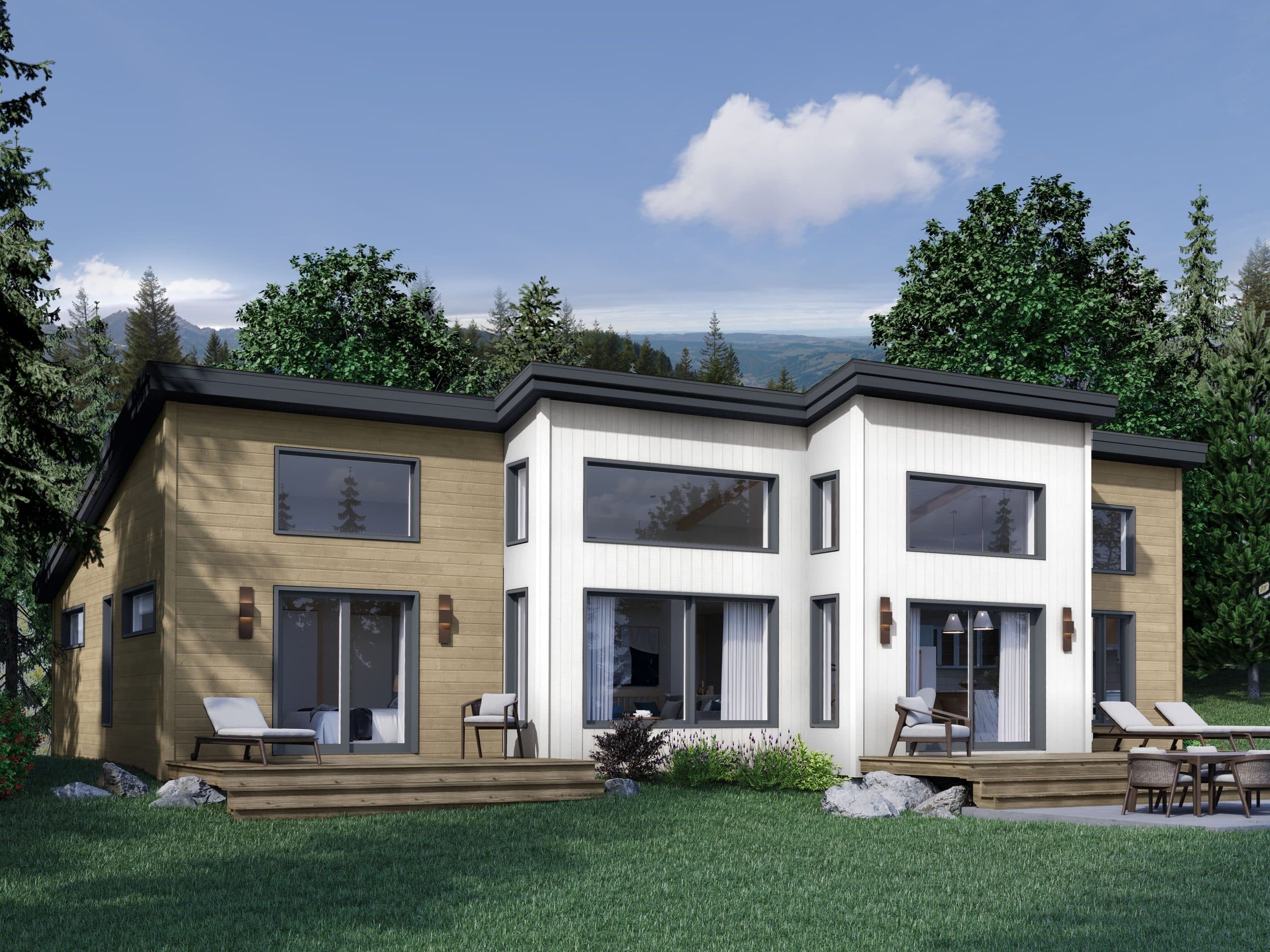 L'Esplanade is a Mediterranean-style chalet. Evening view.