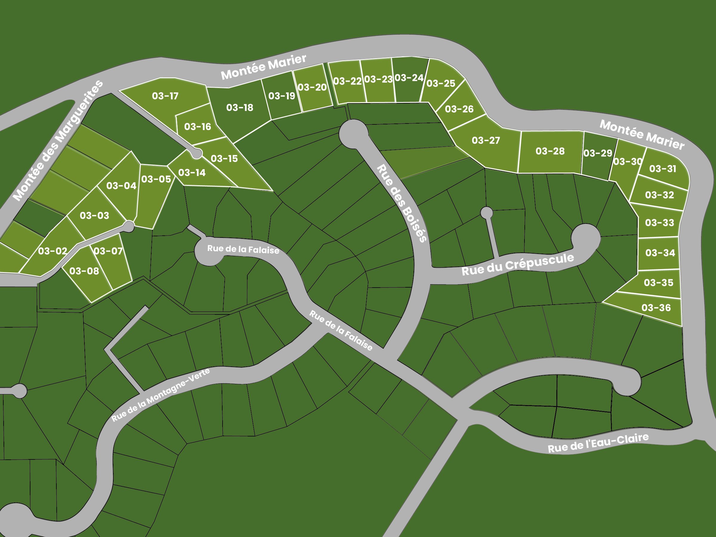 A few lots are still available to build your modular home in phases 3B and 3D. The pre‑sale of lots for micro‑homes in phase 4 is also underway. Take advantage of our current promotions.