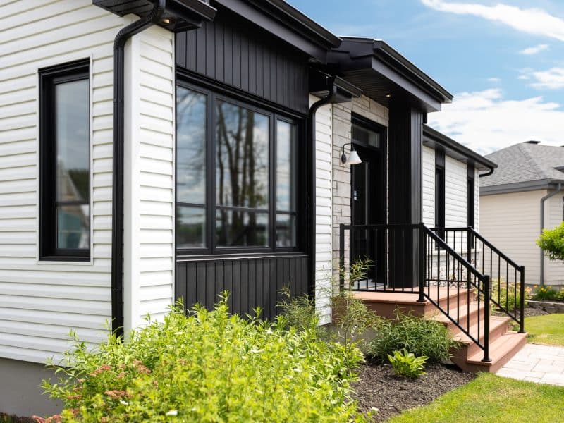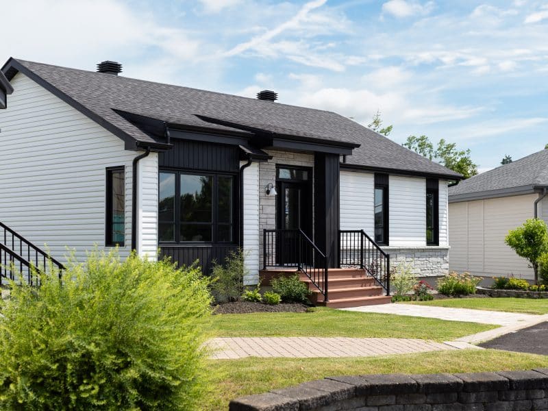 le Modèle Noova est un plain-pied de style contemporain. Nous voyons l'extérieur.